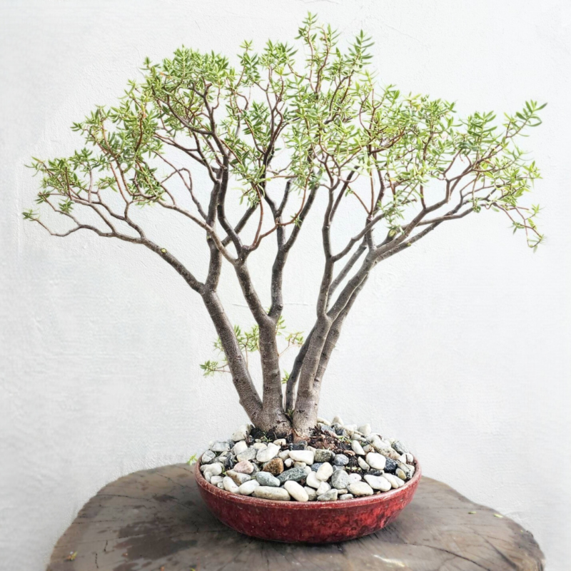 Crassula Species Bonsai in Red Pot – Decorative Succulent Plant