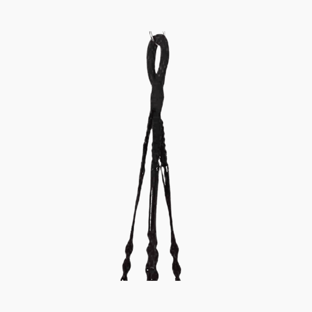 Elegant 1m black macramé plant hanger, handcrafted with durable cotton cord. Perfect for hanging displays indoors or outdoors, adding a bold, modern touch to plant décor.