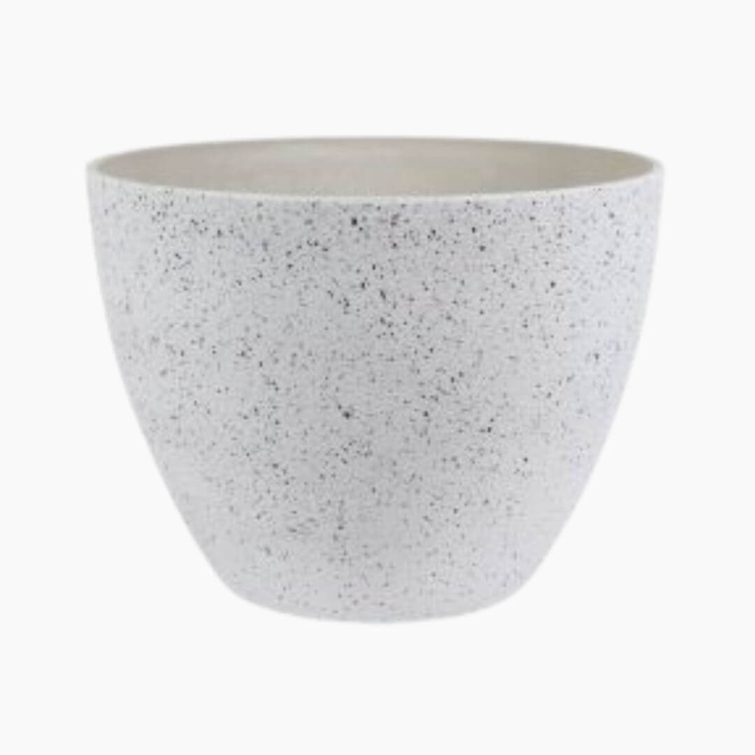 Ceramix pot nova terrazzo white is made from 50% recycled plastic and 50% natural stone powder, the nova pot is a strong, sustainable choice for eco-conscious customers.