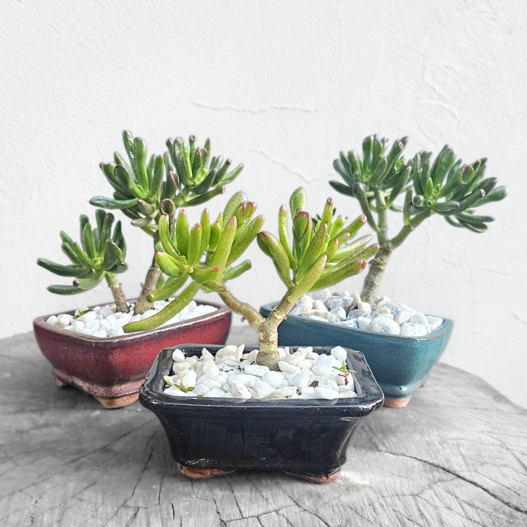 Its compact growth habit makes it ideal for desks, shelves, windowsills, and small spaces, while the bonsai pot adds a refined, sculptural touch. Jelly Bean Plants are drought-tolerant and forgiving, making them perfect for beginners or anyone looking for an attractive, fuss-free indoor plant.