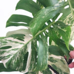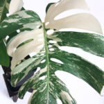 Monstera Borsigiana ‘Albo Variegata’ is one of the most sought-after variegated indoor plants, prized for its dramatic white and green marbled foliage. This specific plant is the one you will receive. Featuring 4 established leaves with beautiful natural variegation, growing in a 12cm square pot with saucer, including a wooden Monstera Stand.