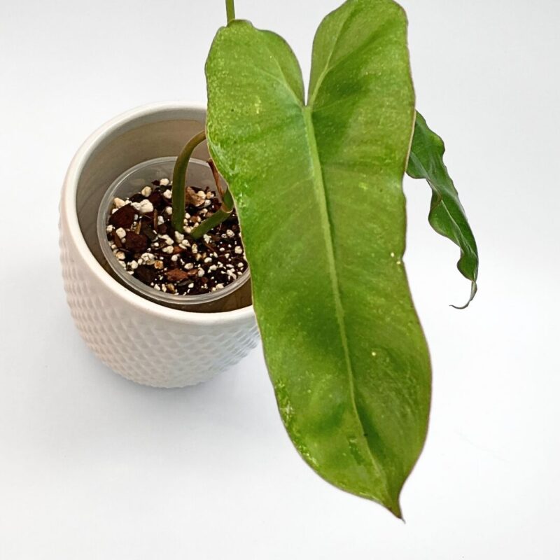 The philodendron paraiso verde is a striking variegated plant that commands attention with its dynamic leaf patterning and vibrant hues. Thriving in bright, indirect light and requiring water when the topsoil becomes dry, it’s perfect for plant enthusiasts looking to add a dramatic flair to their collection. Regular pruning can encourage more variegation.