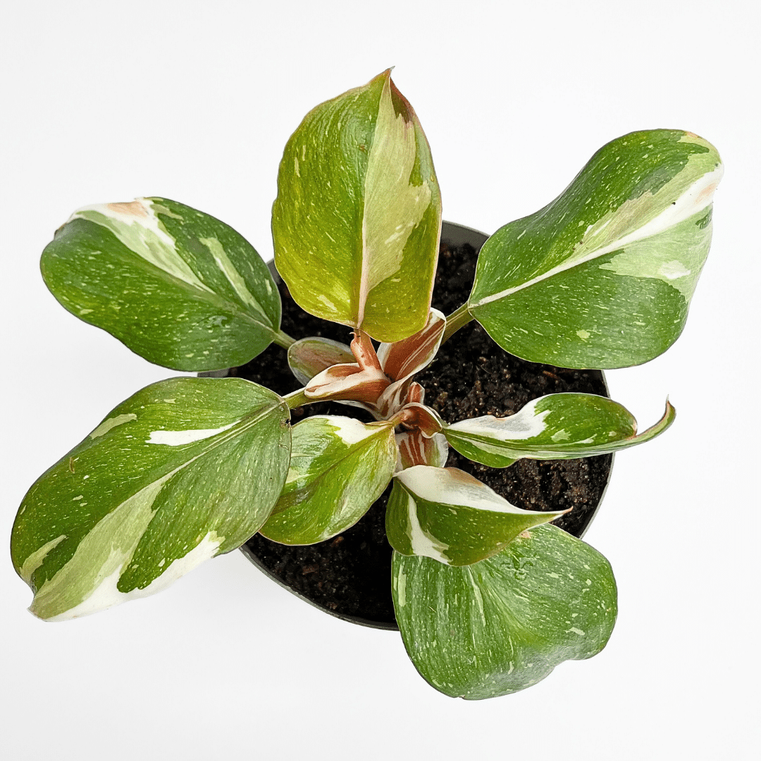 Philodendron ‘white knight’ showcases dramatic white and green variegated leaves, adding a striking touch to any indoor space. Pot size: 15 cm.