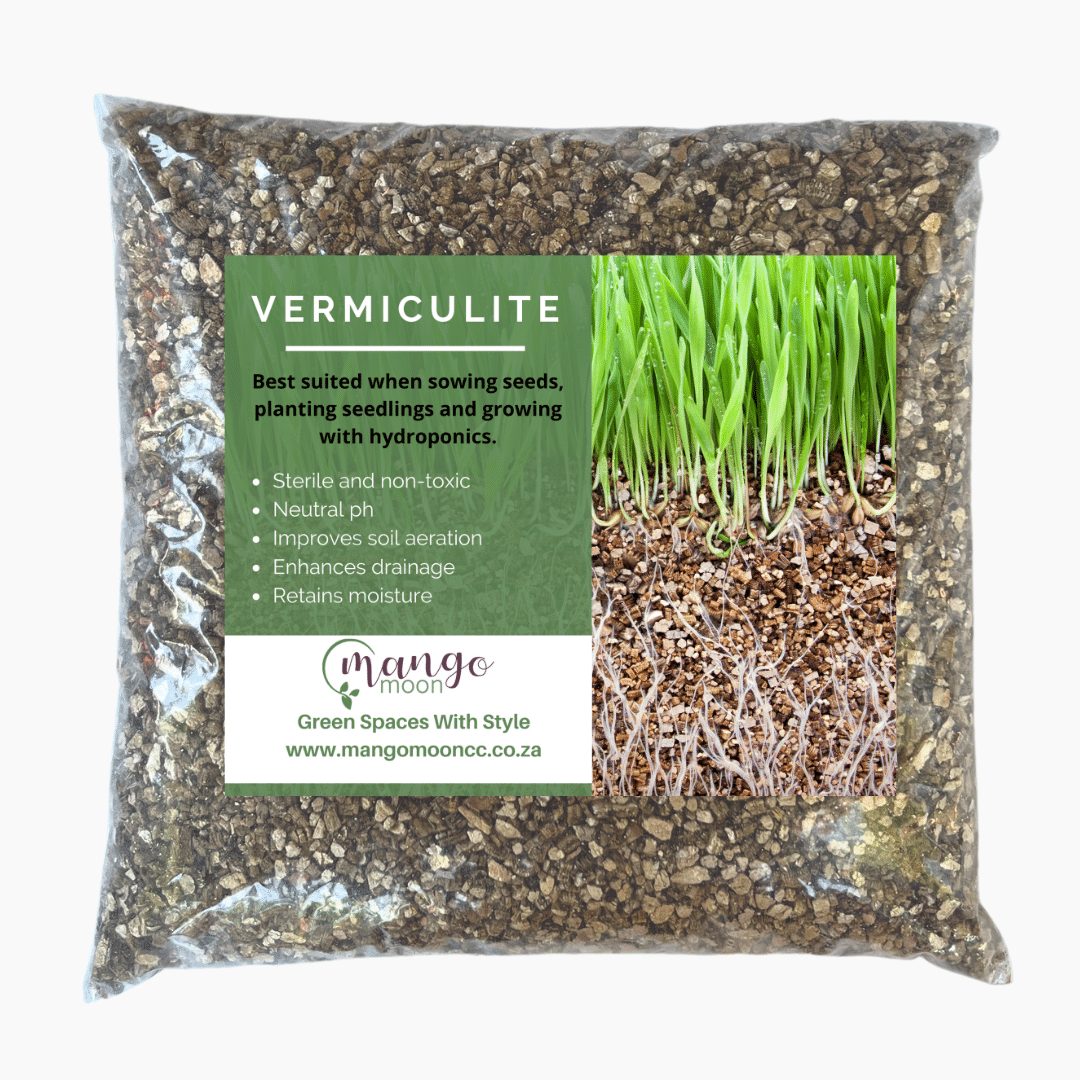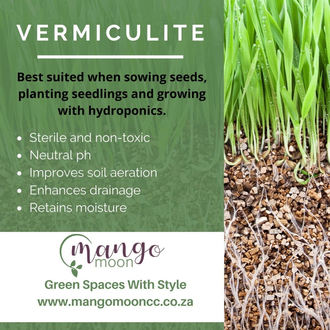 Vermiculite is a sterile and non-toxic soil additive with a neutral ph, that retains moisture, and enhances drainage.